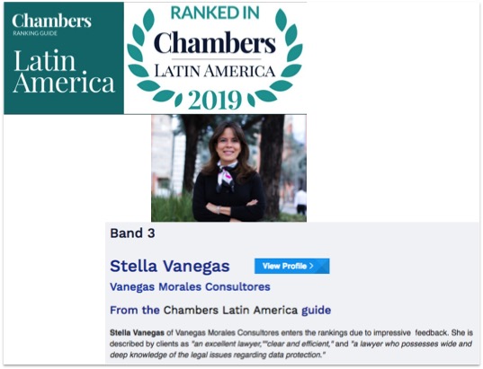 The work of our founding partner Stella Vanegas Morales was recognized due to an “impressive feedback” from our clients, who describe Stella Vanegas as «‘an excellent lawyer’, ‘clear and efficient’, and ‘a lawyer who possesses wide and deep knowledge of the legal issues regarding data protection.’»
